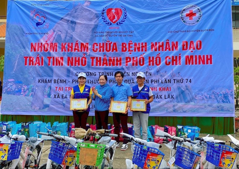 Franci Việt Nam hỗ trợ phát thuốc, tặng quà như sữa, xe đạp và trao 50 suất học bổng cho các em học sinh nghèo vượt khó tại địa phương.
